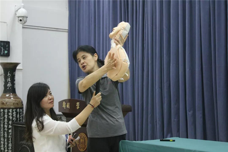 丁利娟讲师详细解释了心肺复苏的含义及其重要性。就导致呼吸心脏骤停的多种原因,她结合案例详细地进行了科学说明。她表示,一旦发生心脏骤停,科学掌握心肺复苏方法十分重要,目击者立即在现场做心肺复苏(CPR)是挽救的最佳方法。她还现场示范了心肺复苏操作流程。