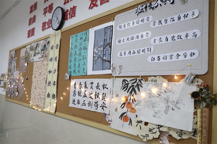 多元的建设主题彰显着班级的文化内涵和价值观。高一一班以“势如破竹”为主题,选取竹子作为主题意象,竹子扎根大地、笔直俊秀,象征着同学们在高一努力打基础,寄托着老师对他们厚积薄发的期望;竹子坚韧挺健、四季常青,生命力旺盛,象征着同学们肆意绽放的多彩青春;竹子节节分明,象征着班级氛围活泼充实又井然有序。高一五班以“正青春,一起拼”为主题,心愿墙上的便利贴承载着他们纯真而远大的梦想,显示出了青春特有的蓬勃朝气。高三一班融合中西方节日,以“烟花向星辰,所愿皆成真”为主题,喜庆欢乐的氛围冲淡了学习的压力,寄托了同学们希望新一年能够收获满满、offer多多的祈愿。高三年级三、四、五班还有不到200天就将迎来高考,他们的班级氛围紧张充实,班级布置井然有序,前后张贴的励志条幅彰显了他们坚决的意志和坚定的决心。