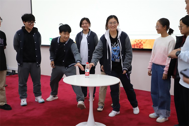 大赛历经初赛的激烈比拼,共有21位同学入围决赛。10月30日晚,决赛现场气氛热烈。正式开赛前,外教老师Tarek和Neil用“你画我猜”的独特形式热场,他们形象生动的肢体动作和夸张的表情将peel、slip、scare等词汇演绎得活灵活现,引得现场回答声与欢笑声交织成一片,让参赛选手在轻松愉悦中卸下压力,消除紧张。