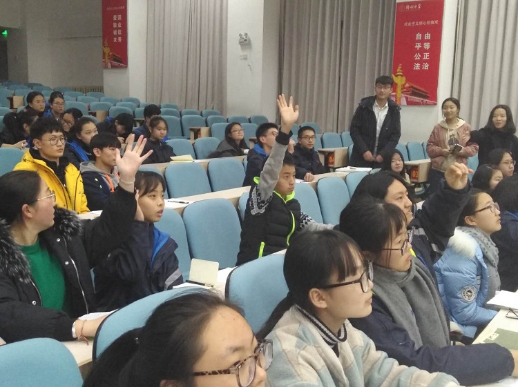 接着,会议结合宣讲内容开展了党的十九大精神知识竞答。竞答现场,同学们踊跃发言,气氛热烈。