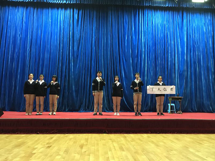 情景剧《商鞅之死》,演绎出了商鞅不屈于命运,勇于抗争的英雄气概,情到浓时,让人心潮澎湃,掌声不息。朗诵到最后,九班集体诵读 “你可知商鞅虽死,然商鞅之法千年不败,你可知商鞅虽死,然一百一十七年之后,秦王朝一统天下!”声势浩大,震撼全场。